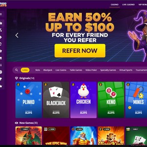 CasinoPurple is a simple gambling site with tons of options, including plenty of mini games and live casino games.