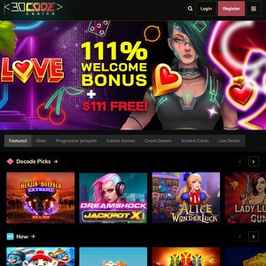 Decode Casino is a flashy site with a wide range of casino options to enjoy, including slots, blackjack, baccarat, etc.